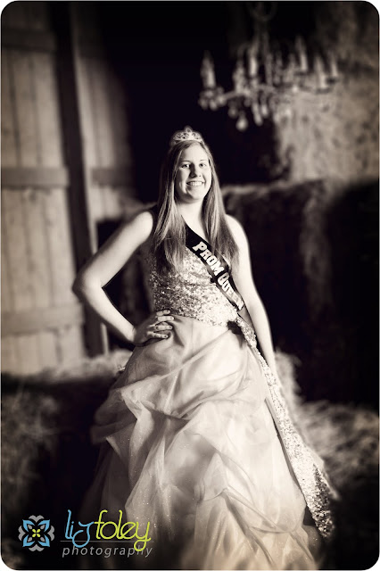I had the pleasure of working with Anna on a lovely cold and rainy day last week. She was a real trooper though - you would never know she was freezing! Anna was Prom Queen here in town, so we had the opportunity to do some really fun things in her dress and crown! This session took place in our barn here on our property in Lena, Illinois.